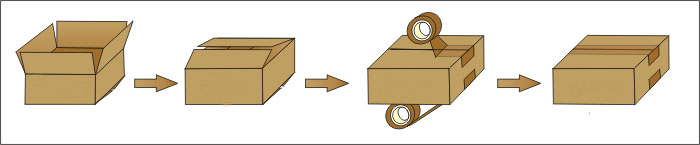 人工推入————————自動(dòng)折蓋——————————上下封箱—————————封箱完成
