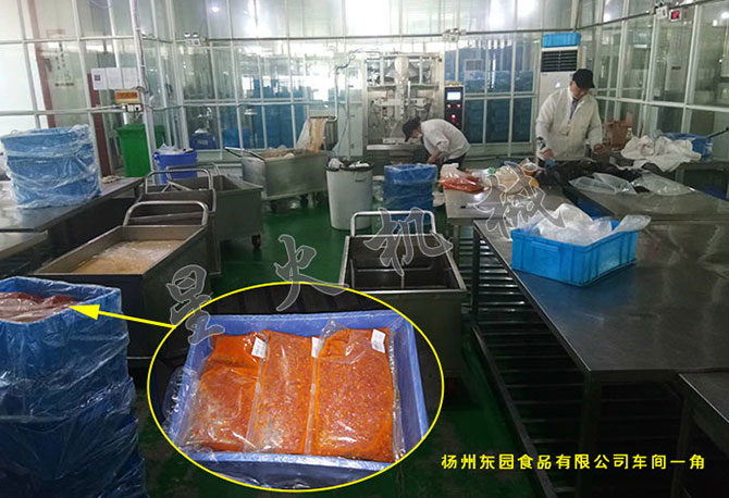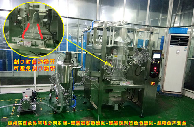 近日,揚(yáng)州東園食品有限公司為了旗下多倫多海鮮自助的餐飲需要,而從我司購買了一款蒜蓉辣醬包裝機(jī),用于大袋裝的蒜蓉辣醬、蒜蓉湯料等的生產(chǎn)需要,封口的時(shí)候自動(dòng)撐開,可以避免封口褶皺,包裝效果顯著。目前,經(jīng)過我司技術(shù)人員的到廠調(diào)試安裝后,蒜蓉醬包裝機(jī)已在揚(yáng)州東園食品有限公司的生產(chǎn)車間投入正式使用。下圖是我司技術(shù)人員在揚(yáng)州東園食品有限公司車間的實(shí)拍。