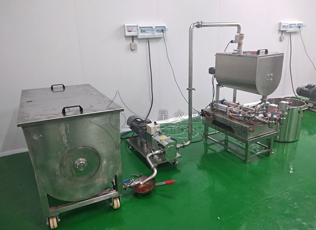 此次,香香羊火鍋所購(gòu)買(mǎi)的這款自動(dòng)火鍋辣醬灌裝機(jī)是由400kg攪拌桶+轉(zhuǎn)子泵+液位感應(yīng)器帶管道+辣椒醬雙頭灌裝機(jī)所組建而成的,針對(duì)大顆粒醬料、火鍋底料的灌裝而研制,料桶及與物料接觸部分均采用316L不銹鋼材料制成,符合食品衛(wèi)生安全標(biāo)準(zhǔn),適用于各類(lèi)粘稠體及含有各種固體物質(zhì)如辣椒、花生、肉塊,佐料等物體的醬和油、料分離的火鍋底料的生產(chǎn),設(shè)備結(jié)構(gòu)合理簡(jiǎn)單,精度高,廣泛應(yīng)用于火鍋底料、火鍋辣醬、火鍋芝麻醬、辣椒醬、麻辣醬、香辣醬、牛肉醬、豆辨醬、鮮辣醬、豆豉及郫縣豆醬等醬類(lèi)包裝。
